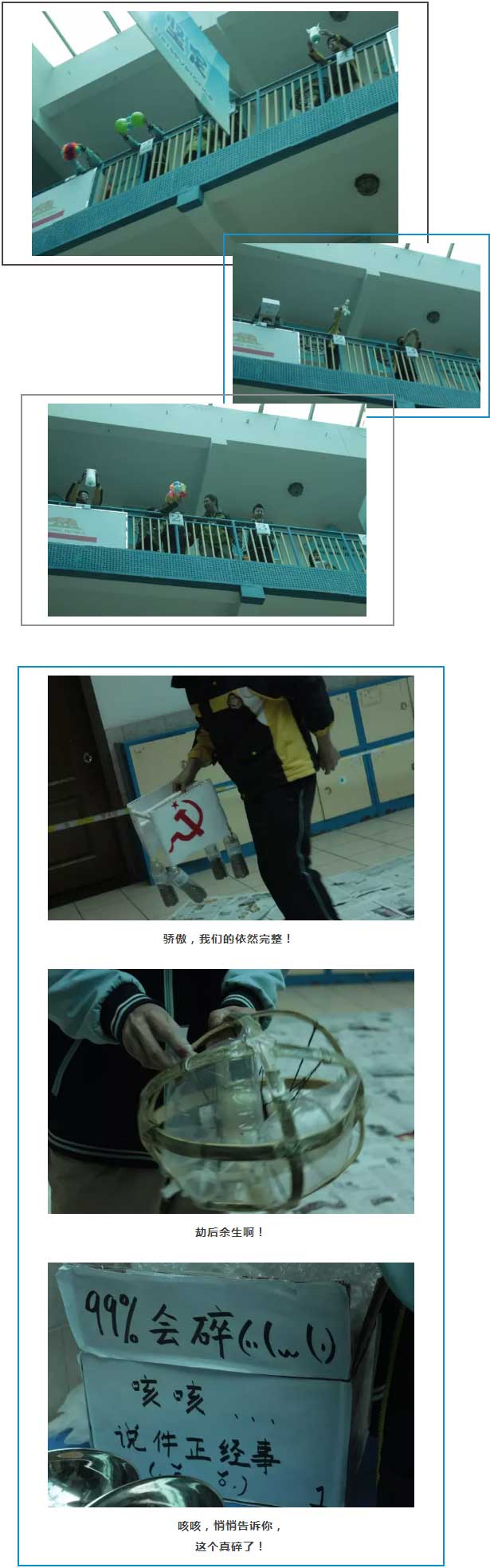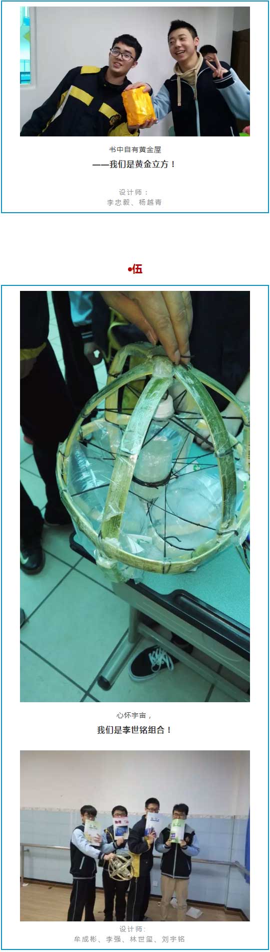 因準(zhǔn)備時間過于倉促,本次比賽最后上交成品僅15組,應(yīng)廣大同學(xué)強烈要求,下一屆科學(xué)研討月活動物理探究將延續(xù)今年的“雞蛋撞地球”主題。