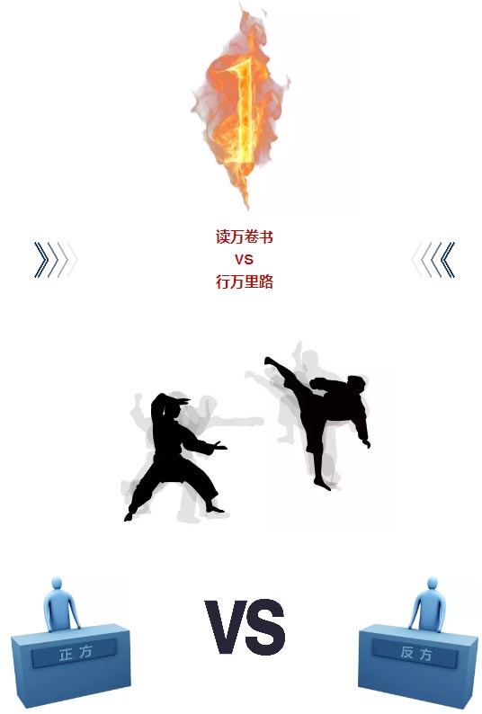 主持人劉奕伶毛琬凌宣布比賽開始后,雙方圍繞“讀萬卷書還是行萬里路哪個(gè)更重要”這一辯題展開。