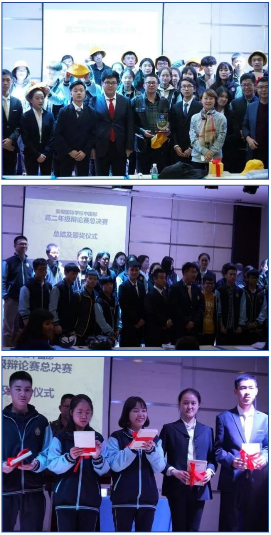 趙旃藝、何知原、胡忠孝、羅嘉木、何媛媛五位同學在團隊配合度、邏輯思辨能力和發(fā)言氣勢上更勝一籌,因此,此次年級辯論賽總決賽冠軍桂冠由高二三班代表隊摘得!