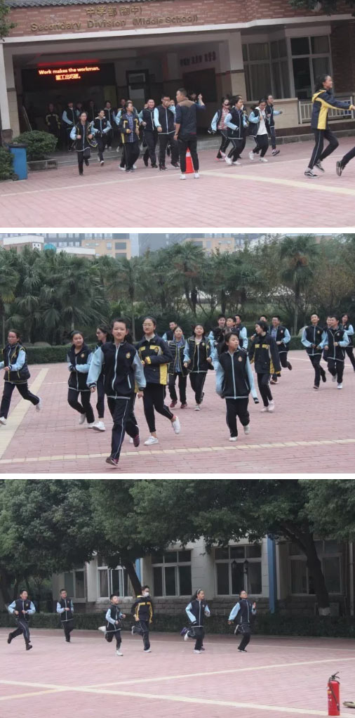 此時,廣播里正播放著此次演習(xí)的安全注意事項,提醒全體師生疏散時要嚴(yán)肅、認(rèn)真,做到不打鬧、不嬉戲、不大聲喧嘩、不制造緊張氣氛,務(wù)必按照指定路線安全、快速、有序地撤離到指定地點。