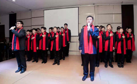 整場比賽的高潮是初二全體男生登臺朗誦的《少年中國說》!
