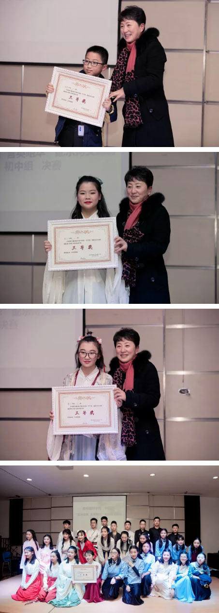 銜接班的《沁園春·雪》、初一一班和四班的《李白組詩》、初二二班的《蒹葭》榮獲三等獎