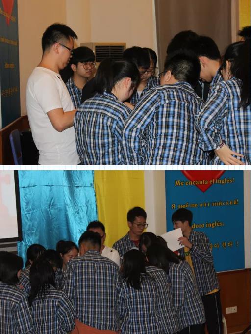 為助力高考,中國(guó)部·中學(xué)心理教師梁青泉(國(guó)家中級(jí)拓展培訓(xùn)師)組織高三年級(jí)同學(xué)進(jìn)行了一場(chǎng)“沉著應(yīng)對(duì)”高考的考前拓展培訓(xùn)。