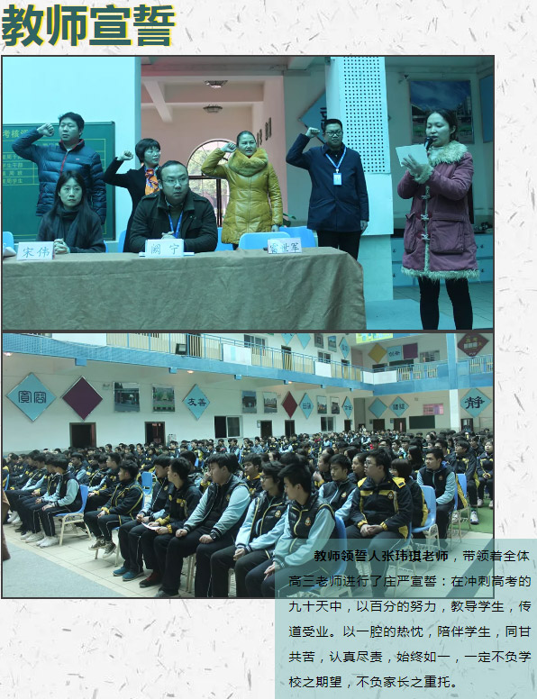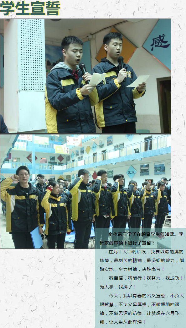 “亂云飛渡,戰(zhàn)士信念未移;馳騁疆場(chǎng),方顯英雄本色。”三年的勤奮努力,只為這最后一搏,希望你們帶著老師的忠告,家人的厚望,同學(xué)的鼓勵(lì),在這最后一戰(zhàn)爆發(fā)出前所未有的力量!