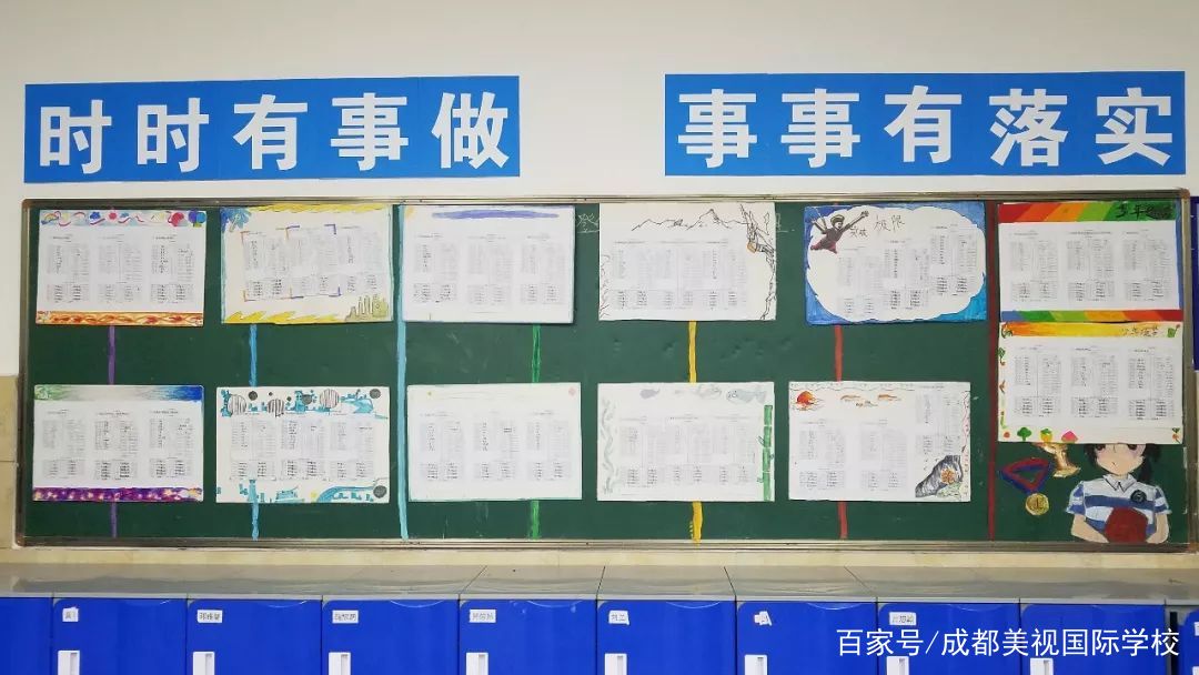 黑板報是鐘慶老師班上最亮麗的一道風(fēng)景線,不僅設(shè)計優(yōu)秀,而且書寫工整,讓前來觀看的師生都嘖嘖稱贊。其背后卻展示了班主任提早的布置與安排:寒暑假制作刊頭畫,提前請教美術(shù)老師設(shè)計問題,安排專人書寫(橫式和豎式人員都不同)……精彩的呈現(xiàn)背后一定是精心的設(shè)計和有效的落實。