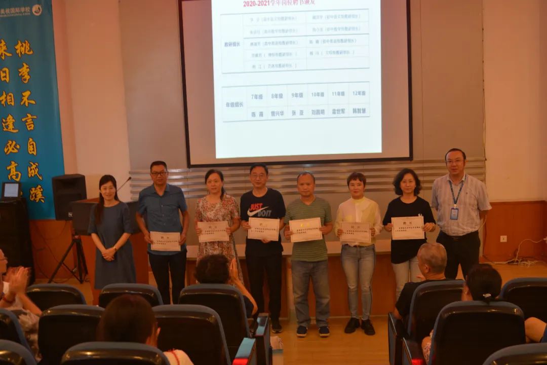接下來,劉校宣布了中學(xué)部2020-2021學(xué)年度工作例會(huì)安排,以及管理團(tuán)隊(duì),行政主管,項(xiàng)目、年級(jí)組、教研組的人事變動(dòng)安排等,并為任職的老師們頒發(fā)了聘書。會(huì)議上,還有五位新老師與大家見面,他們的到來給學(xué)部注入了優(yōu)質(zhì)、新鮮的血液,更好的優(yōu)化了教師隊(duì)伍,促進(jìn)了學(xué)校的內(nèi)核發(fā)展。