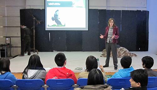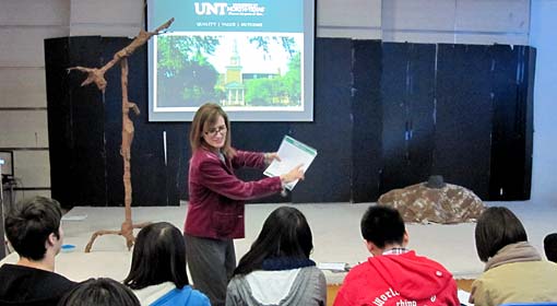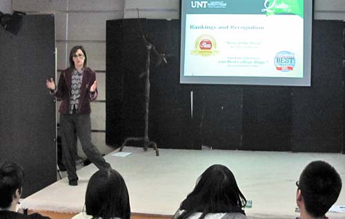 2011年12月15日,美國北德克薩斯大學(xué)國際招生部主任Dickie Hargrave女士應(yīng)邀訪問成都美視師一學(xué)校國際項目部并為國際項目部高中生做了一場招生宣講。
