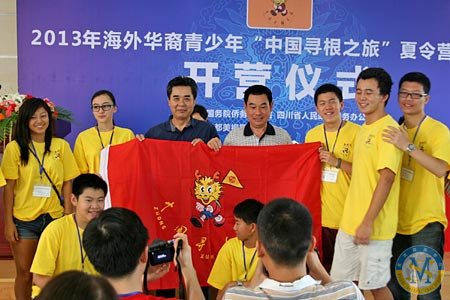 7月24日上午,2013年海外華裔青少年“中國尋根之旅”夏令營四川營開營儀式在我校融合部學(xué)術(shù)廳舉行。69名來自來自美國、加拿大、英國、德國、比利時、澳大利亞、日本、荷蘭、瑞典等國家的海外華裔青少年和領(lǐng)隊老師齊聚四川,學(xué)習(xí)中華文化,探尋文化之根。