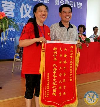 夏令營領(lǐng)隊向四川省僑務(wù)辦贈上錦旗 海外華裔青少年向我校贈送禮物