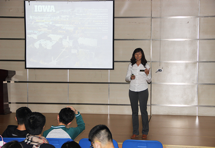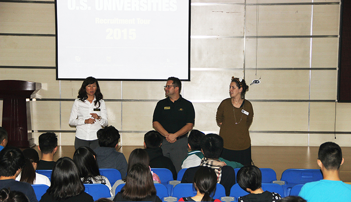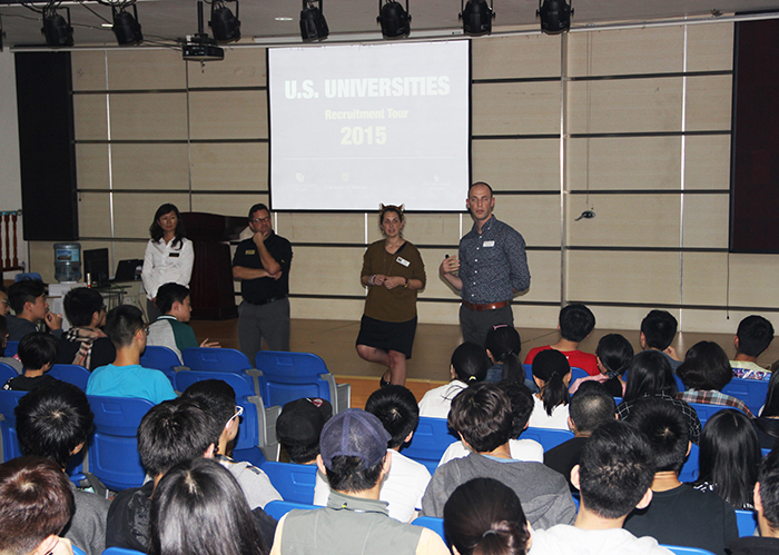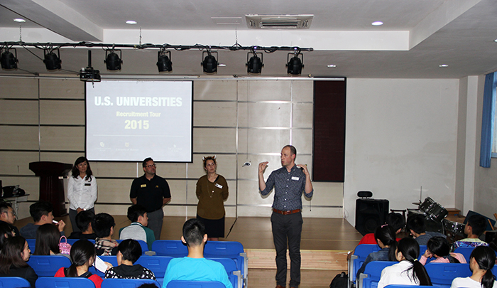 來自四所美國知名公立大學(xué)的招生官們于2015年10月22日來訪我校融合部。他們分別代表科羅拉多大學(xué)波爾得分校、愛荷華大學(xué)、密蘇里大學(xué)以及印第安納大學(xué)。