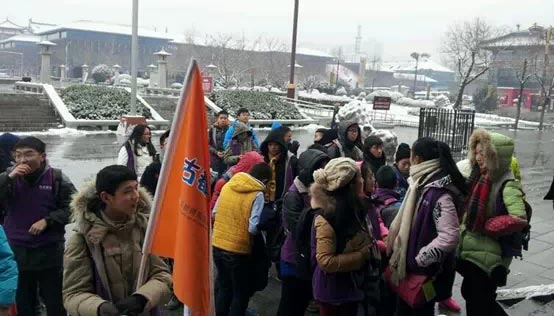 1月31日,西安下了今年以來的第二場(chǎng)雪,白皚皚的城墻仿佛在迎接我們的營員們。孩子們?cè)缭缙鸫?,與正在下落的雪花來了個(gè)親密接觸。