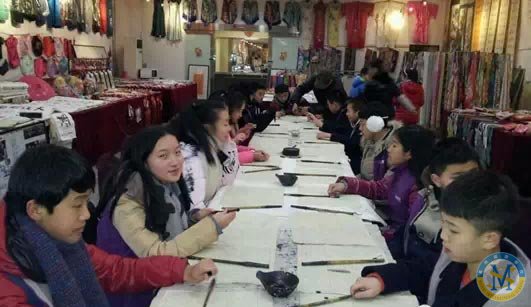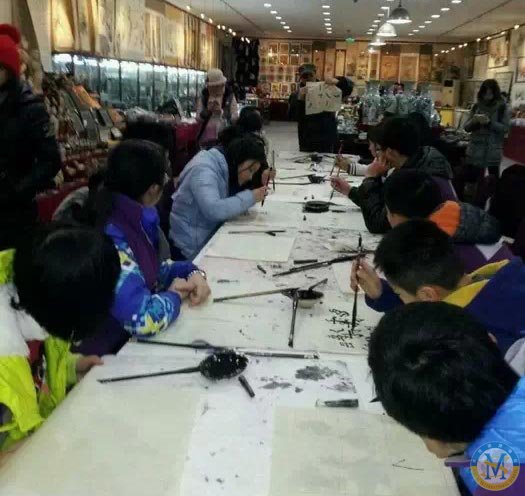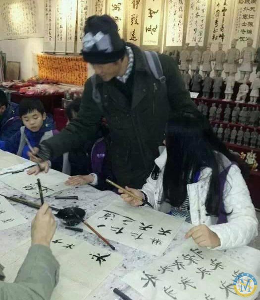 在碑林博物館,營員們被分成了兩個(gè)小組。一個(gè)小組練習(xí)書法,另一個(gè)小組參觀碑林。