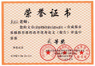 成都市基礎(chǔ)教育課程改革優(yōu)秀論文評選獲獎名單