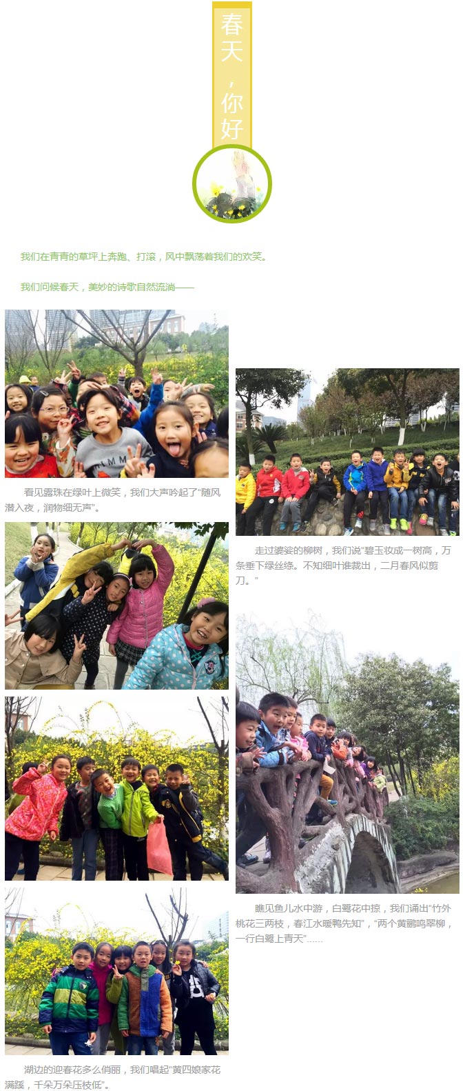 孩子們用詩歌問候春天,快樂的笑聲、瑯瑯的誦讀聲響徹月牙湖畔。