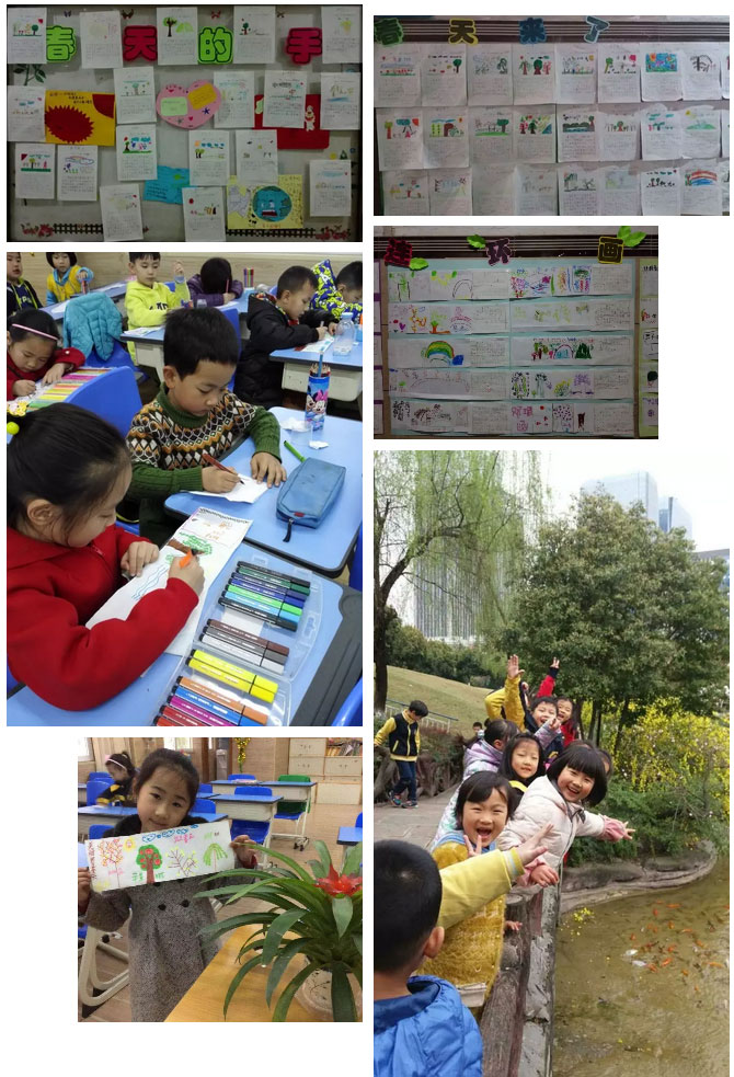 我們的孩子走出教室,走到伴我們愉快成長(zhǎng)的校園里,認(rèn)真觀察、仔細(xì)發(fā)現(xiàn)、共同探尋著每一個(gè)角落里的美;我們的孩子用身體和心靈與校園里的自然親密接觸,讓學(xué)習(xí)變成一種樂趣,讓感受變成筆尖下那一句句真摯的話語,一張張動(dòng)人的圖畫和一次次奇妙的體驗(yàn)。