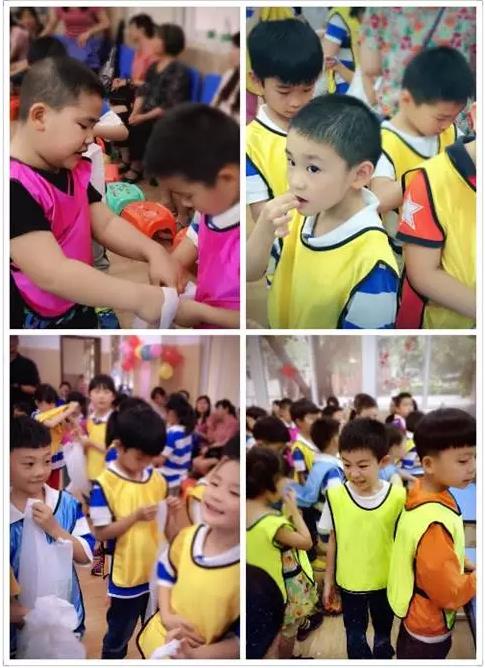 小朋友們有的在幫小伙伴們穿背心,有的在互相鼓氣加油,一個個的神氣勁兒溢于言表。