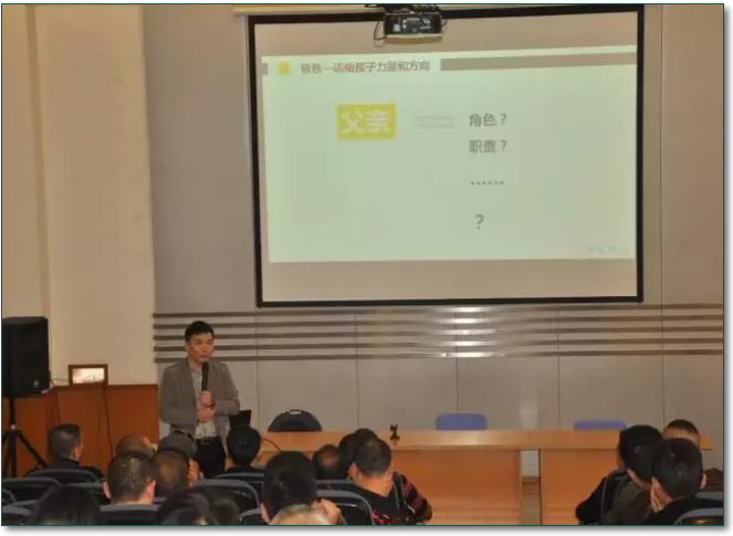 楊老師告訴在座的爸爸們:“‘父教’對(duì)于一個(gè)孩子的成長(zhǎng)極其重要,爸爸對(duì)孩子一句鼓勵(lì)的話是媽媽鼓勵(lì)作用的50倍,“父教”甚至決定著孩子人生的發(fā)展方向,所以父愛不容缺失。