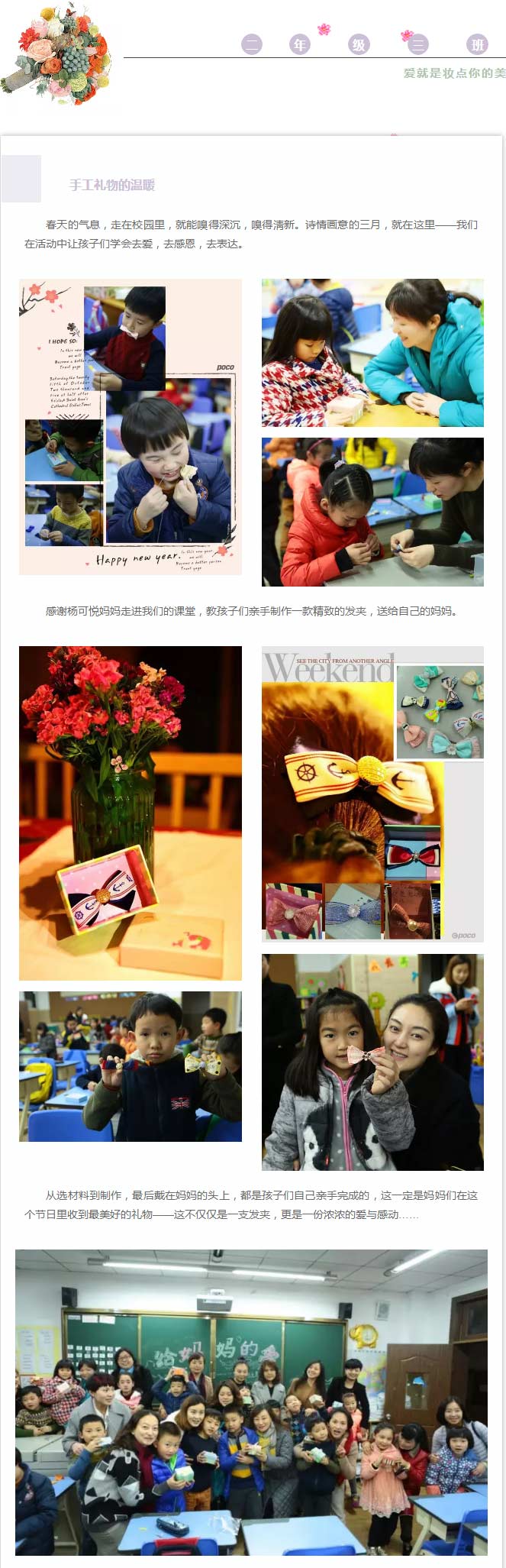 經(jīng)歷這次活動(dòng),我自己也成長不少。以前都是享受著老師為我們安排的感動(dòng),享受著自己孩子對我表達(dá)的愛意,昨天,能夠切身感受每一個(gè)孩子為自己媽媽去付出的努力和表達(dá)的愛,是很震撼的。