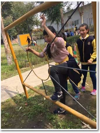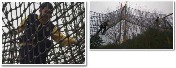 一根根繩子盤根錯節(jié)地系在一起,織成了一張張大網(wǎng),如同連綿起伏的高山,我們心想:完了完了,以前從沒玩過,我怎么可能爬得上去?萬一在同學面前出糗了,怎么辦?