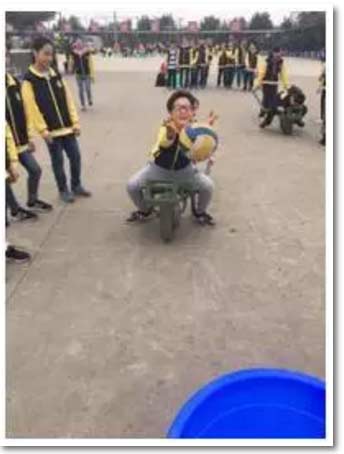 坐在雞公車里投籃,你沒見過吧?嘿,這可比真正的投籃難多了,瞧,投籃高手也有失誤的時候啊!