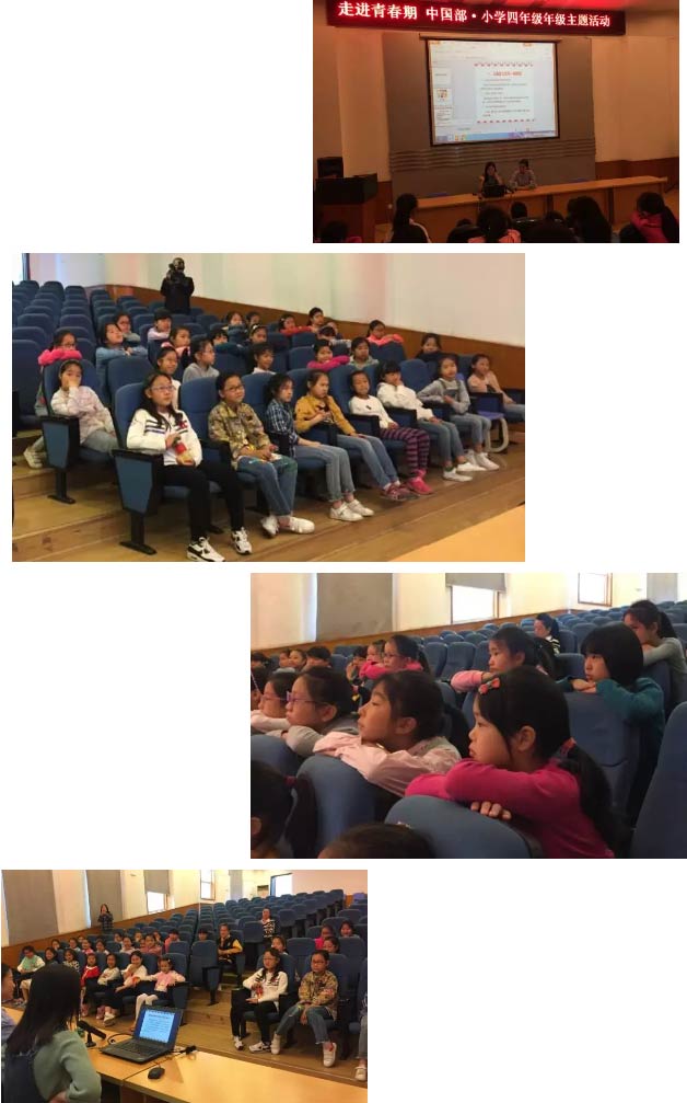 寬大的階梯教室里,學校邀請了成都中醫(yī)藥大學的專業(yè)心理老師為中國部·小學四年級的孩子們帶來了一堂“走近青春期”專題講座。
