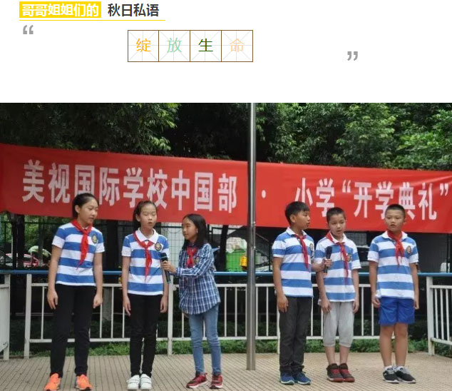 耳畔吹來(lái)新學(xué)期涼爽的風(fēng),祝福中國(guó)部·小學(xué)的全體師生,在這個(gè)美妙的季節(jié)開(kāi)啟嶄新的教育生活,為我們所熱愛(ài)的美視,為我們理想中那個(gè)最好自己的模樣而努力。