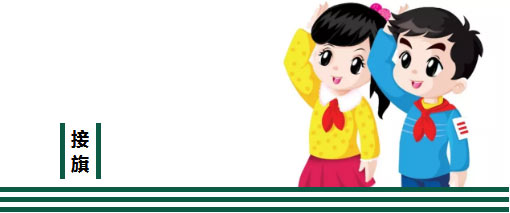 由校大隊委組成的授旗隊伍來到各中隊,我們以這樣的方式進行接旗儀式,讓無上的集體榮譽感流入每一個少先隊員心間。