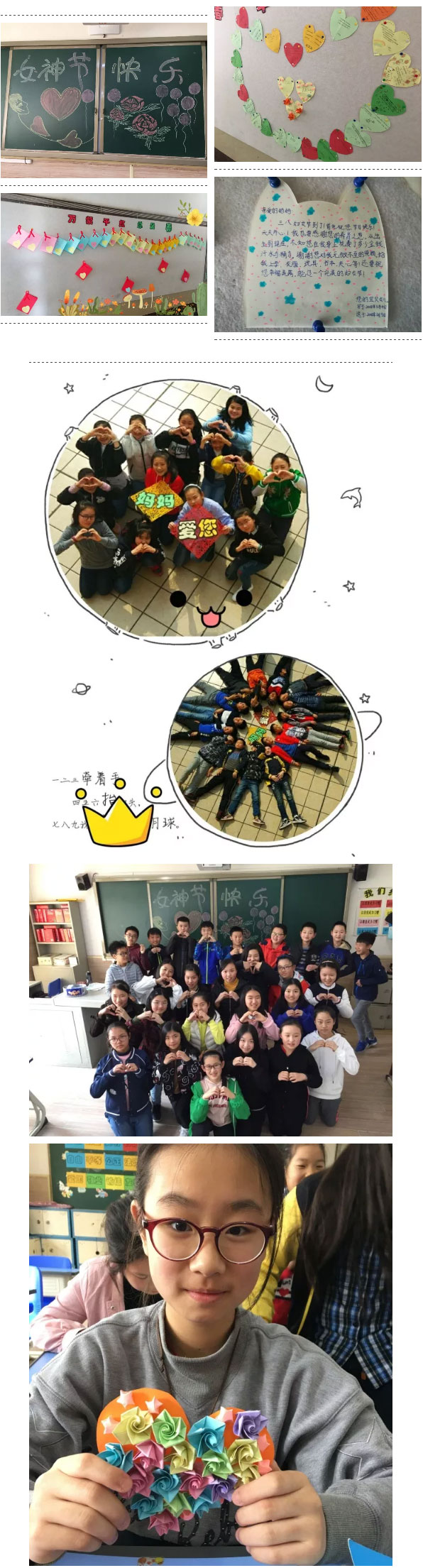 三月,鮮妍明媚。六年級(jí)的孩子們,想起了媽媽慈愛的臉,浮現(xiàn)出老師關(guān)心的眼,他們要把祝福送給媽媽和老師,男孩子們,還要把祝福送給班級(jí)的女漢子們,他們共同寫道:
