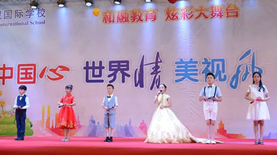 “今天是孩子們展示自我的日子,也是我們家校學習社區(qū)一起聚會的日子。每年“六·一”,是我們和家長一起回味我們感恩生命,欣賞成長的歷程。你記住了自己勤奮的樣子了嗎?你的自律、健康、優(yōu)秀的模樣是不是刻在了你的心底?希望他成為你成長的動力。“中國心、世界情,美視風范,”這正是中國部·小學培養(yǎng)美視學子核心素養(yǎng)的關鍵呈現(xiàn)。“謙謙君子,和而不同。莘莘學子,融會貫通。”這是我們給予孩子做人、做學問上的期許,我們希望美視的孩子能擁有這樣的風范……”