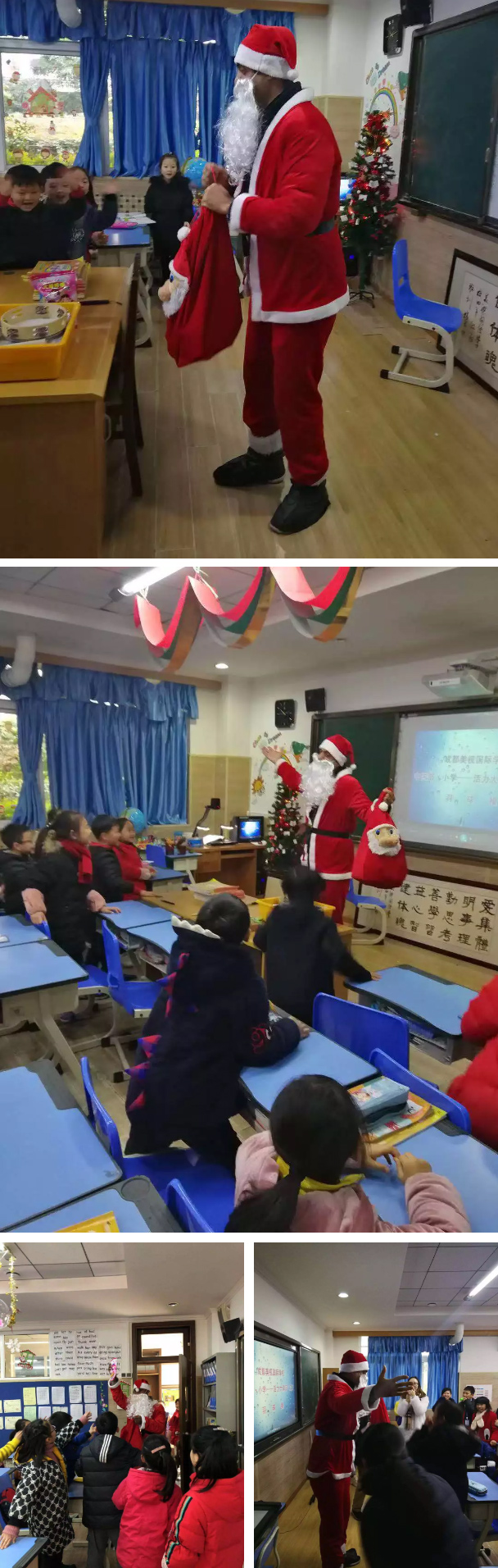 靜靜地坐在教室里聆聽(tīng)各年級(jí)同學(xué)演唱?dú)g樂(lè)的英語(yǔ)歌曲、講述動(dòng)人的英語(yǔ)故事、演繹精彩的英語(yǔ)話劇……真是一種不可多得的享受!特別是最后的環(huán)節(jié)更是令人激動(dòng)不已:由外教裝扮的Santa Claus會(huì)從全校19個(gè)班里,每次抽取出3個(gè)幸運(yùn)班級(jí),并親手為這些班級(jí)的孩子送去甜蜜的糖果!每到這個(gè)時(shí)刻,全校同學(xué)都會(huì)屏息聆聽(tīng),并在心里默默祈禱:“親愛(ài)的Santa Claus,快抽中我們班吧!”答案揭曉的那一刻,教學(xué)樓里充滿著“Lucky Class”同學(xué)們驚喜的歡呼聲。他們正激動(dòng)、熱情地迎接Santa Claus的到來(lái)。小小糖果,吃在嘴里,卻一直甜到了心坎兒里。
