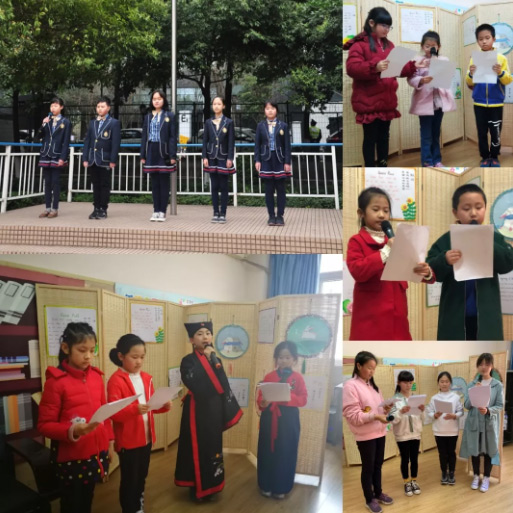 中國部·小學(xué)每個(gè)年級的學(xué)生代表們,通過廣播“讀詩成曲,傳誦經(jīng)典”,讓國學(xué)的音韻縈繞在美視校園里