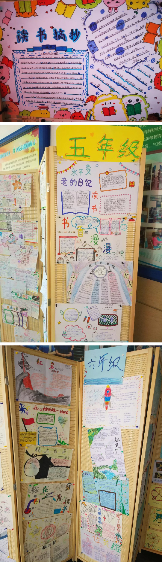 四、五、六年級(jí)同學(xué)辦的讀書小報(bào)色彩鮮艷,內(nèi)容豐富,創(chuàng)意無限。