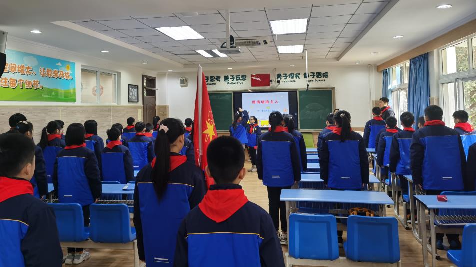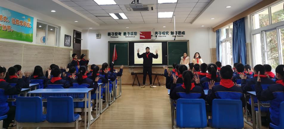2020年12月23日下午,成都美視師一學(xué)校小學(xué)部省級課題《少先隊生命自護(hù)課程的構(gòu)建與實(shí)施策略研究》邀請三位專家:晏祥輝(原四川團(tuán)省委少年部副部長、博士、副教授),楊其勇(成都師范學(xué)院博士、研究員),謝麗莎(成都師范學(xué)院副教授、國培專家)到校,對課題主研人員、各中隊輔導(dǎo)員和專著撰寫人員再次進(jìn)行課題指導(dǎo)培訓(xùn)。 培訓(xùn)會的第一項流程,由六一中隊呈現(xiàn)了一堂以“做情緒的主人”為主題的少先隊生命自護(hù)課:按照“三二三模式”,先進(jìn)行“三報程序”(小隊長報人數(shù)給中隊長,中隊長報人數(shù)給中隊輔導(dǎo)員),再出旗、唱隊歌。