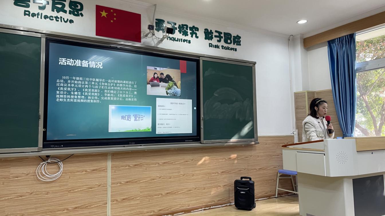 培訓(xùn)會第二項流程,六一中隊輔導(dǎo)員對該次主題班隊會進(jìn)行反思。一到六年級中隊輔導(dǎo)員代表,以及大隊輔導(dǎo)員將本期課題研究情況做了匯報。