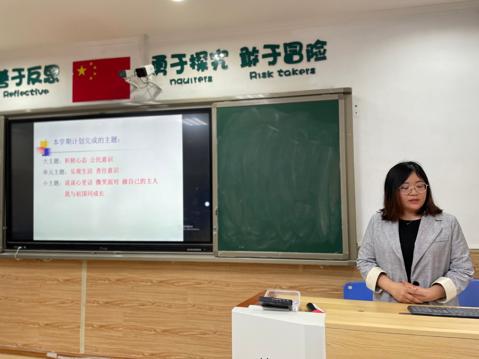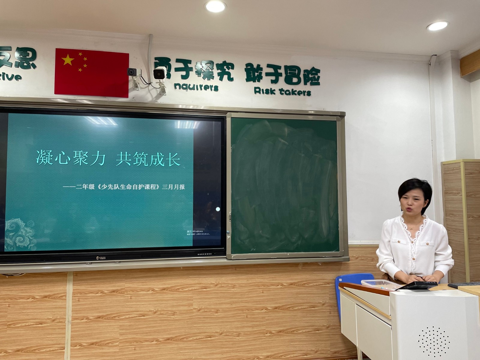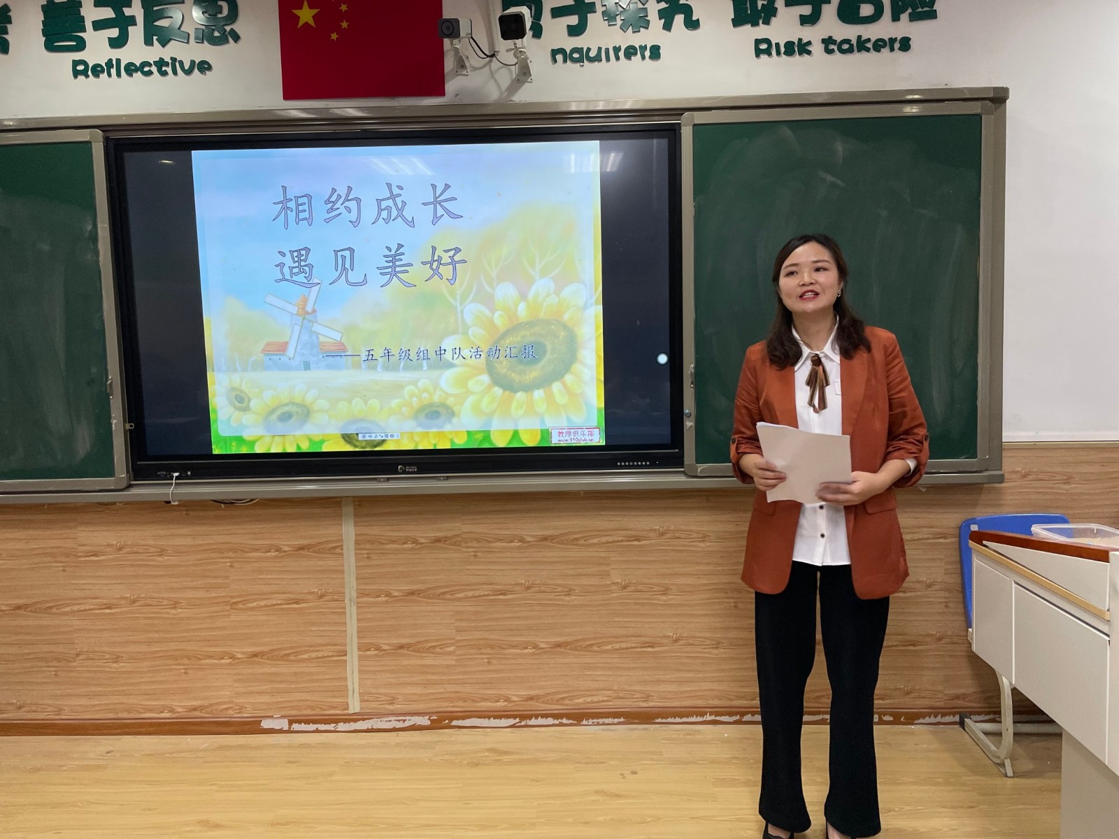 培訓會第二項流程,一到六年級中隊輔導員代表,以及大隊輔導員進行了月報總結陳述,并提出了下一學月的目標。