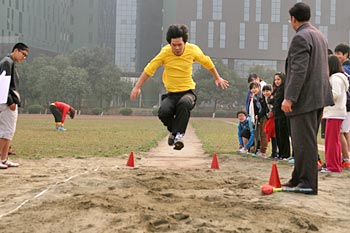 當(dāng)天早上,首先由國(guó)際項(xiàng)目部校長(zhǎng)劉建華先生致開幕詞。之后,同學(xué)們按不同年齡段被分為不同小組參與不同項(xiàng)目的比賽。比賽項(xiàng)目有籃球、足球、跳高、跳遠(yuǎn)、投擲、滑輪障礙接力游戲、越獄游戲、100米接力賽跑、尋寶游戲、拔河游戲、趣味跳遠(yuǎn)、羽毛球賽、跳繩等等。運(yùn)動(dòng)會(huì)結(jié)束前,劉校長(zhǎng)為獲獎(jiǎng)選手頒獎(jiǎng)。通過本次運(yùn)動(dòng)會(huì),同學(xué)們明白一個(gè)道理,只有具有健康的身體,他們才能在今后的工作學(xué)習(xí)中做得更好。