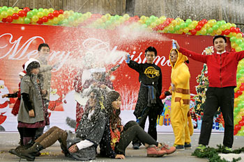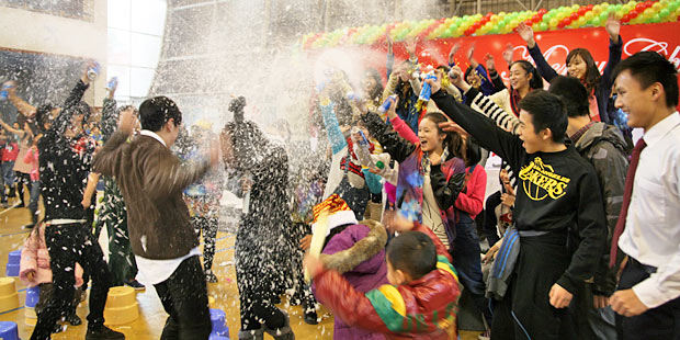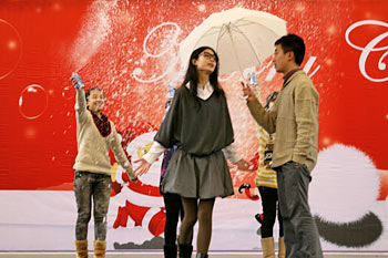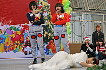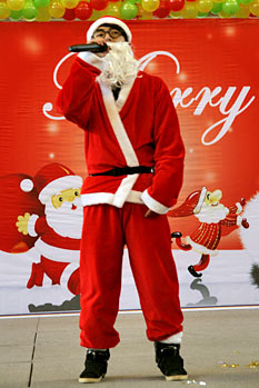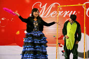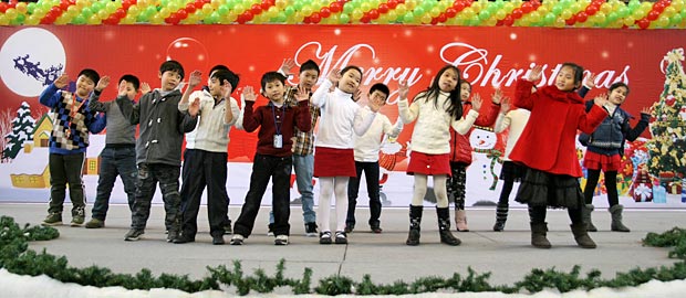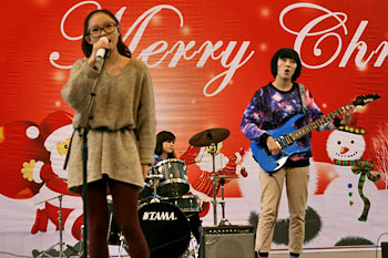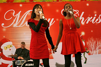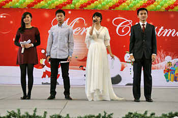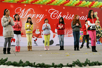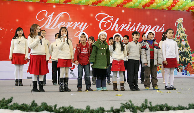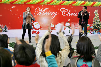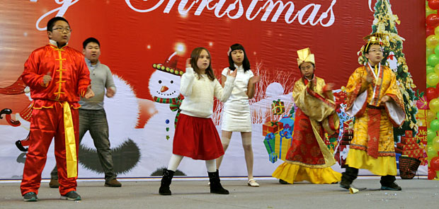 2012年12月21日,伴隨著圣誕頌歌的響起,美視項(xiàng)目部圣誕慶?;顒?dòng)在學(xué)校體育館內(nèi)舉行。體育館內(nèi)被圣誕傳統(tǒng)顏色點(diǎn)綴得五彩繽紛,有常青、雪白、金銀色、藍(lán)白色等。演出現(xiàn)場(chǎng)大約有600名觀眾,包括學(xué)生、老師、家長(zhǎng)。中、小學(xué)生在老師的帶領(lǐng)下高唱圣誕頌歌。表演的節(jié)目還包括樂隊(duì)、舞蹈(拉丁、現(xiàn)代、爵士)、鼓樂、三重唱、合唱等。節(jié)目結(jié)束后,“圣誕老人”上場(chǎng)。孩子們立即涌向“圣誕老人”并索要糖果。同時(shí),圣誕慶?;顒?dòng)到此全部結(jié)束。師生們將度過一個(gè)愉快的圣誕、元旦假期。