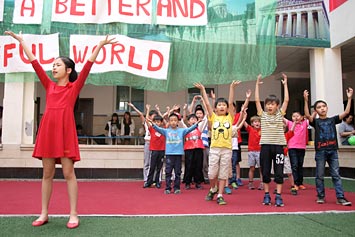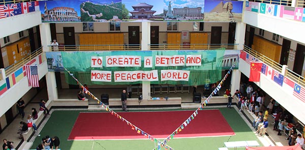 2014年4月30日,國際部家長、學生、教職員工在國際部教學樓歡慶“國際日”。