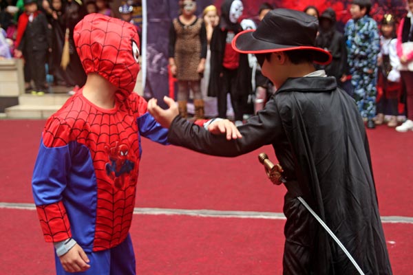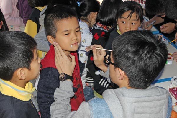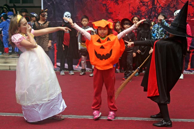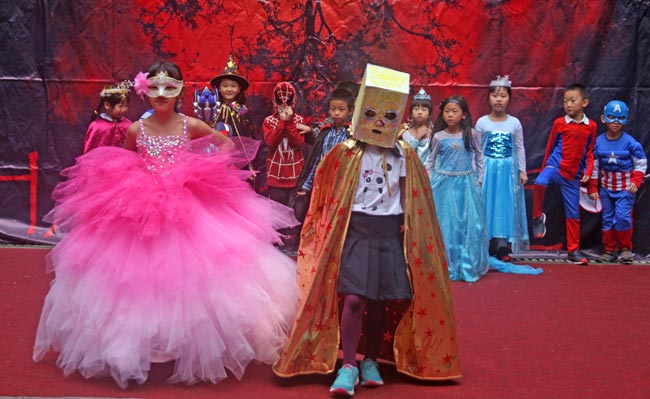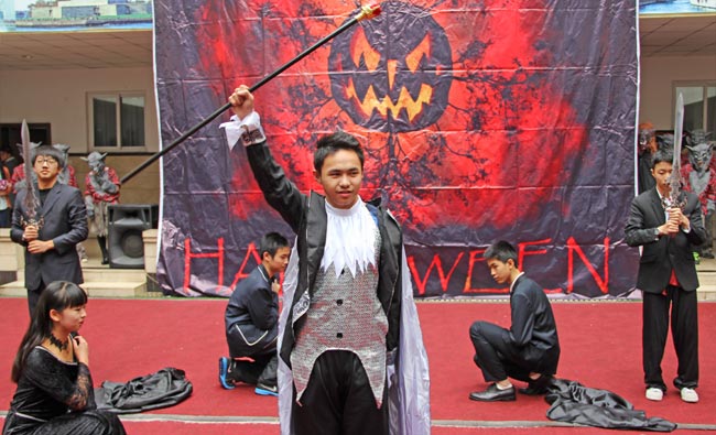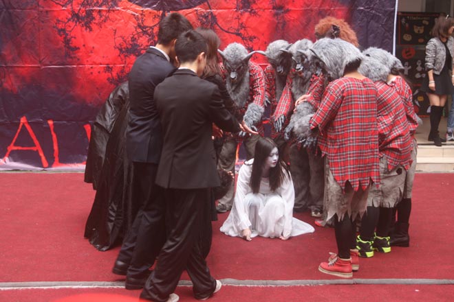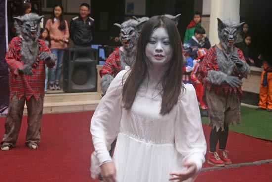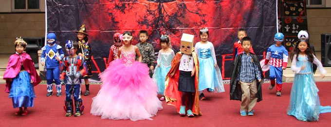 2014年10月31日下午,美視部在教學樓歡慶2014年度萬圣節(jié)。穿著不同顏色、不同款式的萬圣節(jié)盛裝的同學們按年級出場,在觀眾面前擺出不同的姿勢,贏得了觀眾的陣陣掌聲。之后,部分同學參觀了“鬼屋”,其他同學參與了游戲。同時,學校為大家提供了糖果、飲料及點心。