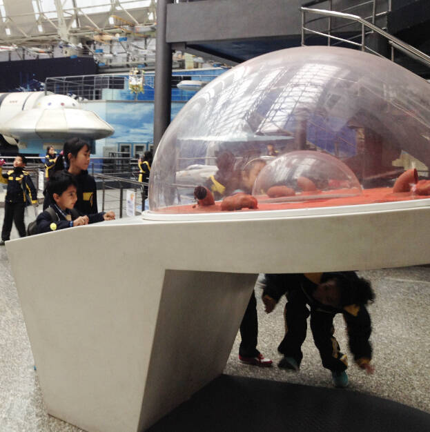 經(jīng)解說員阿姨介紹得知,原來這是個(gè)旋轉(zhuǎn)椅!坐在上面可以體驗(yàn)宇航員在太空失重下無法站立、身體呈現(xiàn)出倒立、傾斜等狀態(tài)。沒有經(jīng)過訓(xùn)練的人從椅上下來,就會(huì)有頭暈?zāi)垦?、站立不穩(wěn)的感覺。