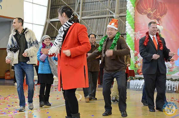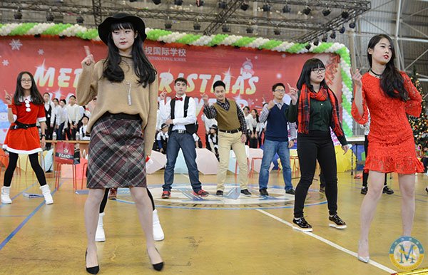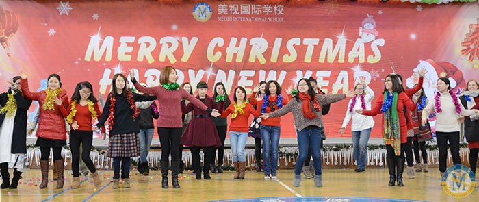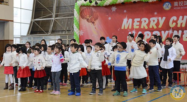 冬日難得一見(jiàn)的暖陽(yáng)映照著充滿活力的校園,濃濃的圣誕新年氛圍悄悄地藏在校門口高大的圣誕樹(shù)上,藏在圣誕老公公和藹的笑容中,藏在國(guó)際部每位老師與孩子的心里。12月18日的學(xué)校體育館里歡聲笑語(yǔ),紅色綠色的圣誕裝飾物隨處可見(jiàn)。孩子們同家長(zhǎng)、老師一道歡聚一堂,慶祝這個(gè)歡樂(lè)的節(jié)日。