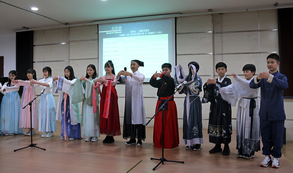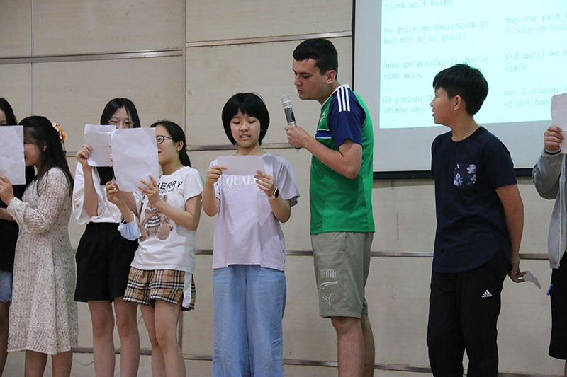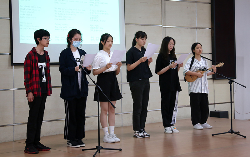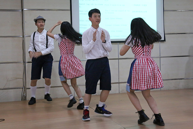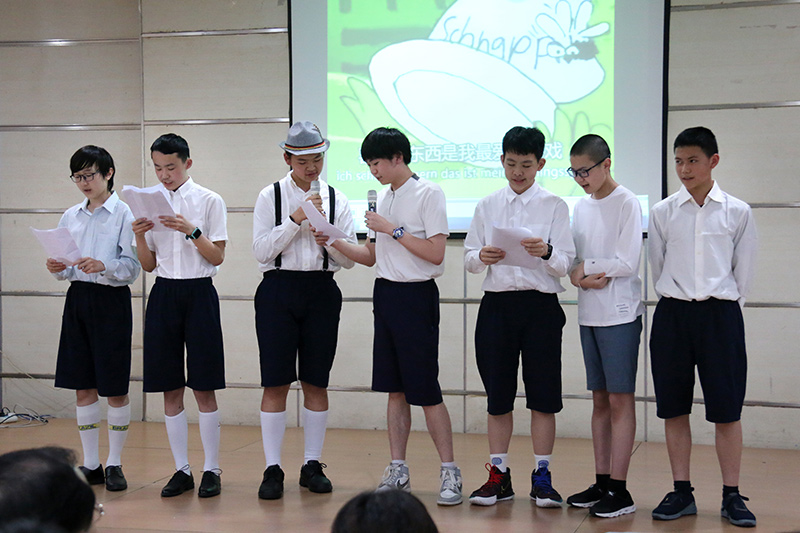 下午一點(diǎn)半師生齊聚大禮堂欣賞表演。本次跨文化日里一共涉及到了不同的11種語(yǔ)言:阿爾巴尼亞語(yǔ),德語(yǔ),印度語(yǔ),愛(ài)爾蘭語(yǔ),意大利語(yǔ),日語(yǔ),韓語(yǔ),中世紀(jì)英語(yǔ),文言文(古中文),西班牙語(yǔ),以及法語(yǔ)。每個(gè)年級(jí)的學(xué)生及一部分的老師都分到了不同的組別進(jìn)行跨文化日的準(zhǔn)備和排練。本次表演豐富多彩,大家用各種語(yǔ)言帶來(lái)了朗誦、歌唱,還有舞蹈表演。每組的表演風(fēng)格各異,每一種語(yǔ)言都向觀眾呈現(xiàn)其獨(dú)特之處。