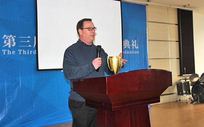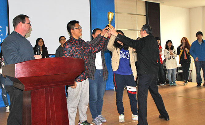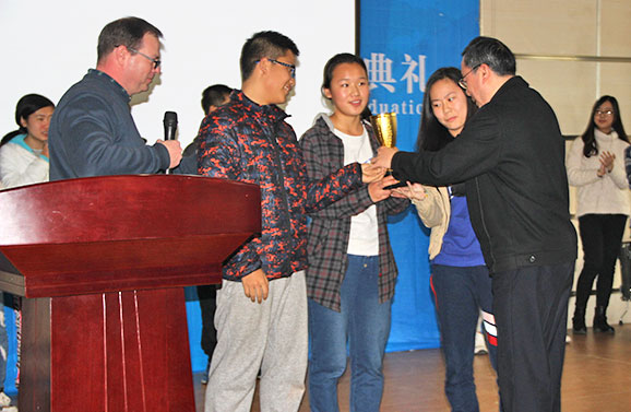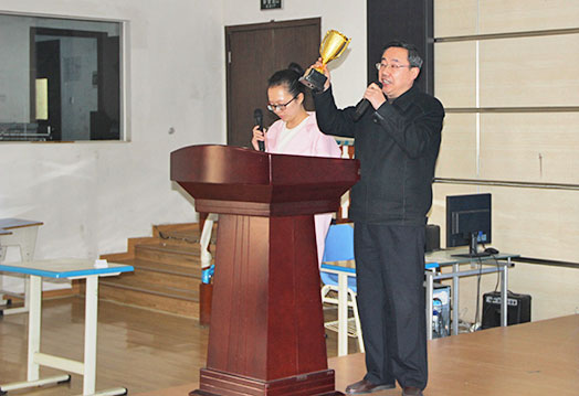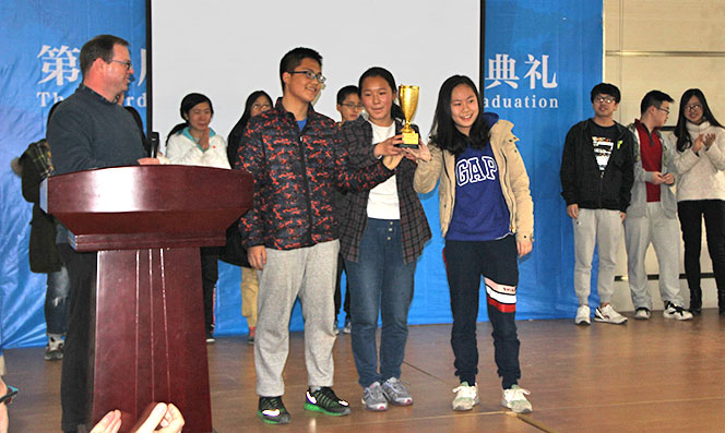 接下來(lái)劉校長(zhǎng)發(fā)表了精彩的講話,他向在這次比賽中獲得了優(yōu)異成績(jī)的同學(xué)們表示了祝賀,并和同學(xué)們分享了出國(guó)留學(xué)的新動(dòng)態(tài),激勵(lì)同學(xué)們要刻苦學(xué)習(xí)。最后劉校長(zhǎng)給獲獎(jiǎng)的同學(xué)們頒發(fā)了獎(jiǎng)杯。最后一環(huán)節(jié),升學(xué)顧問(wèn)Mr. King 介紹了國(guó)際學(xué)校聯(lián)盟即將舉行的各項(xiàng)比賽,鼓勵(lì)同學(xué)們踴躍參與到其中,取得榮譽(yù)固然是好,積極參與同樣重要。