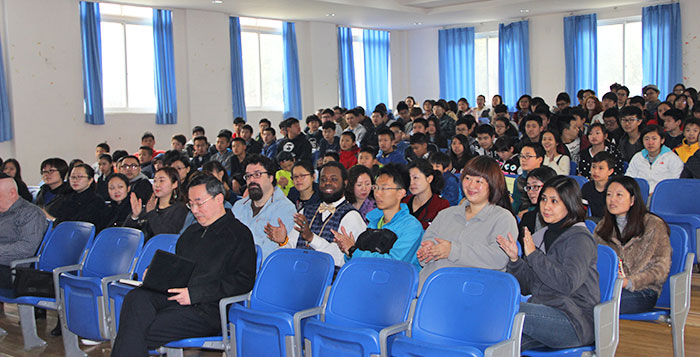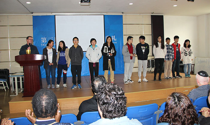 早上11點(diǎn)初高中老師和同學(xué)們齊聚在禮堂,大會(huì)由副校長(zhǎng)Mr. Kevin Blissett主持開(kāi)場(chǎng),他首先介紹了融合部新的組織架構(gòu),緊接著祝賀了取得優(yōu)異成績(jī)的同學(xué)們,并向?yàn)檫@次比賽付出辛勤勞動(dòng)和汗水的老師們表示感謝?,F(xiàn)場(chǎng)掌聲雷動(dòng),師生們都為這振奮人心的消息感到激動(dòng)。
