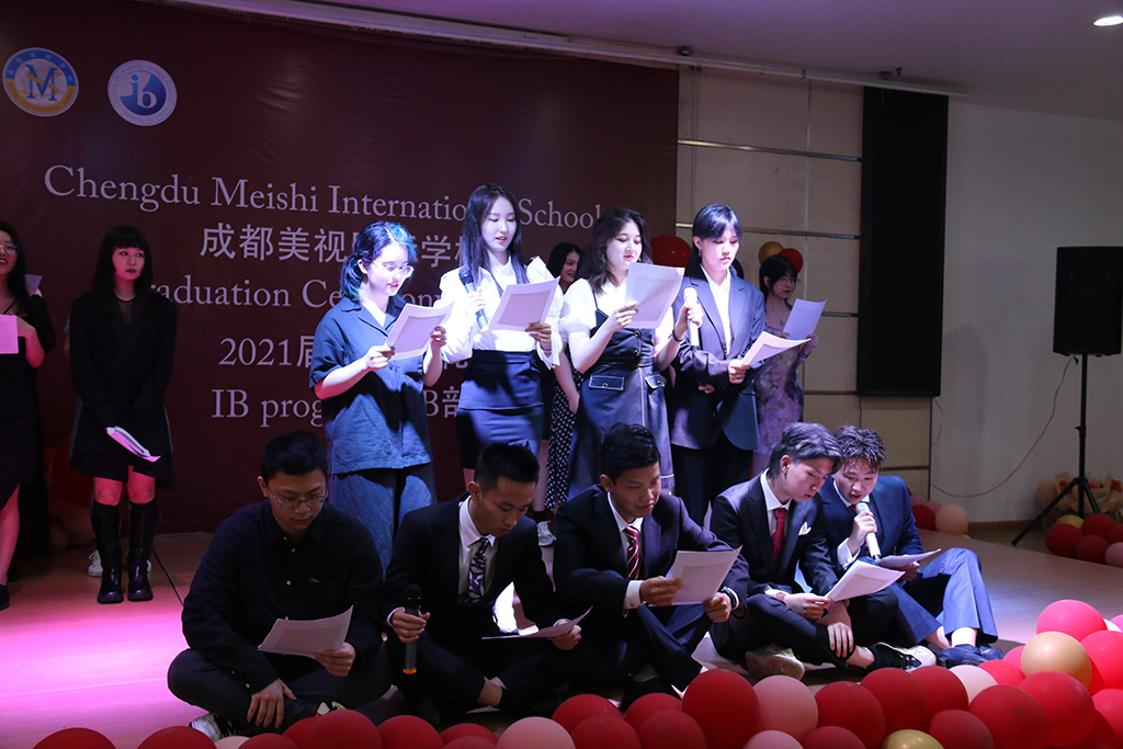 典禮開始,12年級班主任昌老師帶領所有畢業(yè)生入場,接下來IB部劉校長發(fā)言,她回顧了畢業(yè)生的美視學習生涯,用不同顏色形容了2021年,是畢業(yè)們戰(zhàn)勝困難取得優(yōu)異成績的金色,是代表畢業(yè)生多元化的彩虹色,是代表師生互相關懷的炙熱的紅色,是代表思念與祝福的藍色。劉校長還提出了對畢業(yè)生的囑托,希望大家時刻在人生中準備好planB,有備無患;堅守本心,不忘初心;保持批判性思考,并且永遠保持做人的善良和正直,剛柔并濟面對這個世界。
