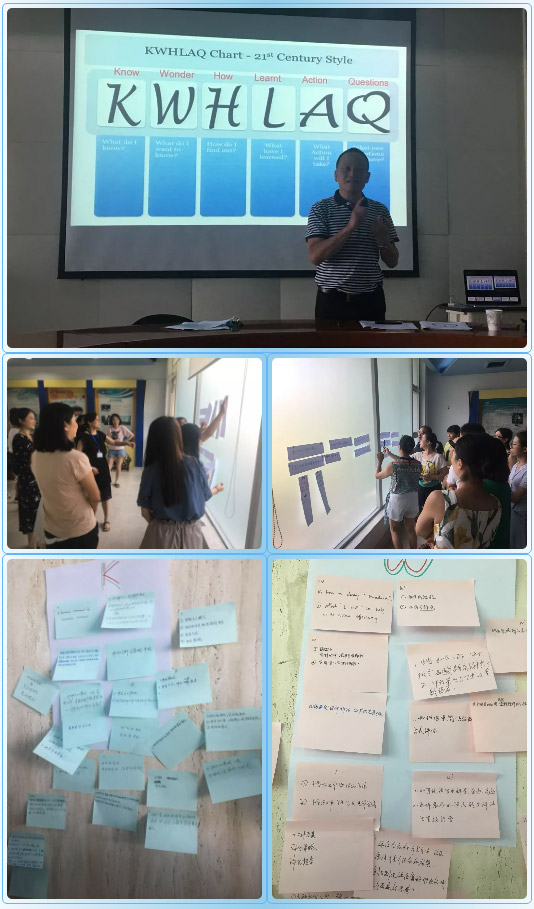 整個培訓(xùn)以“K、W、H、L、A、Q”驅(qū)動。所有教師在沈校長的帶領(lǐng)下勇于嘗試,敢于表達。