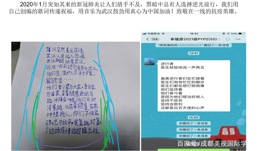 美視始終相信國家的力量,相信團(tuán)結(jié)的力量,相信求知的力量,相信奮進(jìn)的力量。過去的日子,孩子們在春意盎然的暖陽中,在“新常態(tài)課程體系”的陪伴中,不斷感受著學(xué)科的樂趣,領(lǐng)悟著探究的魅力,體悟著生命的奇妙,汲取著知識的養(yǎng)分,綻放著別樣的光彩。