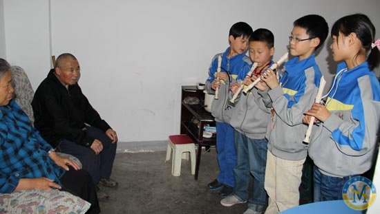走進(jìn)社區(qū),服務(wù)老人,孩子們每次的體會都很深刻。當(dāng)他們走進(jìn)那些獨(dú)居老人的家,看見家中簡單無華的樸質(zhì)擺設(shè),當(dāng)他們知道有些爺爺奶奶身體殘疾無人照料,當(dāng)他們了解原來生活中還有如此的艱辛與勞苦時(shí),他們只能用行動表達(dá)自己的關(guān)懷。每一次,可能只是讀讀報(bào)紙、講講故事、背背古詩、吹吹豎笛、跳跳舞,也可能只是動手擦擦桌子、抹抹家具、掃掃地……