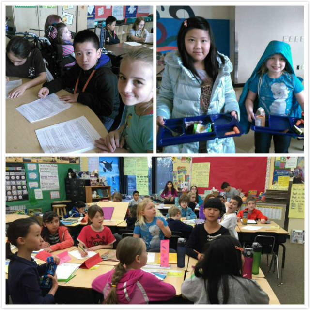 今天Aumsville小學(xué)的營員們按照學(xué)校的課程表上課,很多營員因?yàn)閿?shù)學(xué)好得到了獎勵,大家都很高興。帶隊(duì)的楊老師給4個班上了硬筆書法課,同學(xué)們的興致很高。