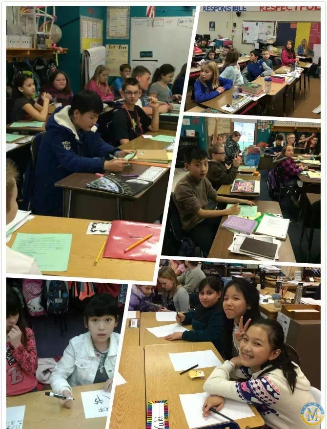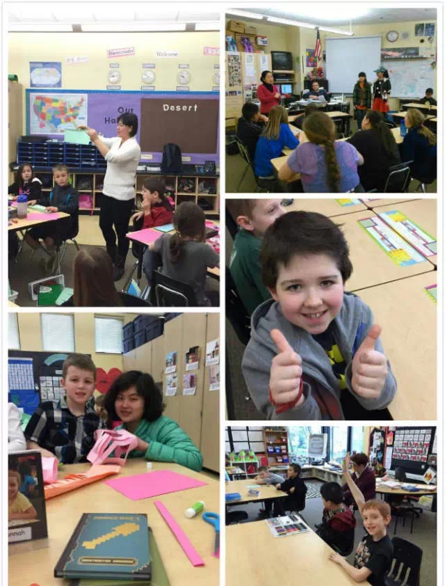Aumsville小學(xué)組的帶隊(duì)老師今天的教學(xué)任務(wù)也很重,需要接著給6個(gè)班的孩子上課。因?yàn)榻裉旌兔魈焓墙o3-5年級(jí)學(xué)生上課,我們的營員們就是插班在這些班級(jí)中,所以每到一個(gè)班都能看到自己的孩子,我們也可以觀察到孩子上課的表現(xiàn),以及與外國同學(xué)的融入情況。